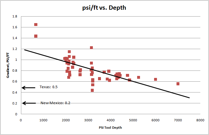 The New Mexico Oil Conservation Division (OCD), the Texas Rail Road Commission (RRC), and the U.S. Environmental Protection Agency (EPA) all require step rate tests to permit injection wells. In lue of a SRT, New Mexico and Texas allow injection below the following fracture gradients: