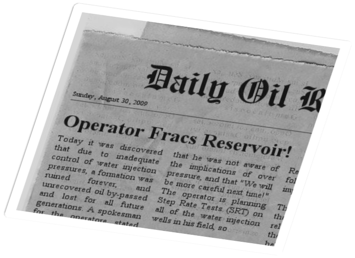 "Rapid water breakthrough in production wells as a direct result of exceeding a certain critical injection pressure in nearby injection wells was observed as early as 1945. This critical injection pressure is called the formation or fracture parting pressure (FPP). The FPP is equivalent to the ‘fracture extension/propagation pressure’ in the hydraulic fracturing literature. Several studies recently demonstrated that a fracture will propagate if injection is above the FPP and the injection/withdrawal ratio is greater than one. In addition to this uncontrolled fracture extension, injection above the FPP may also cause fracturing out of pay. These factors may lead to premature breakthrough of injected fluids, poor sweep efficiency, reduced recovery, and loss of costly injection fluids. “
